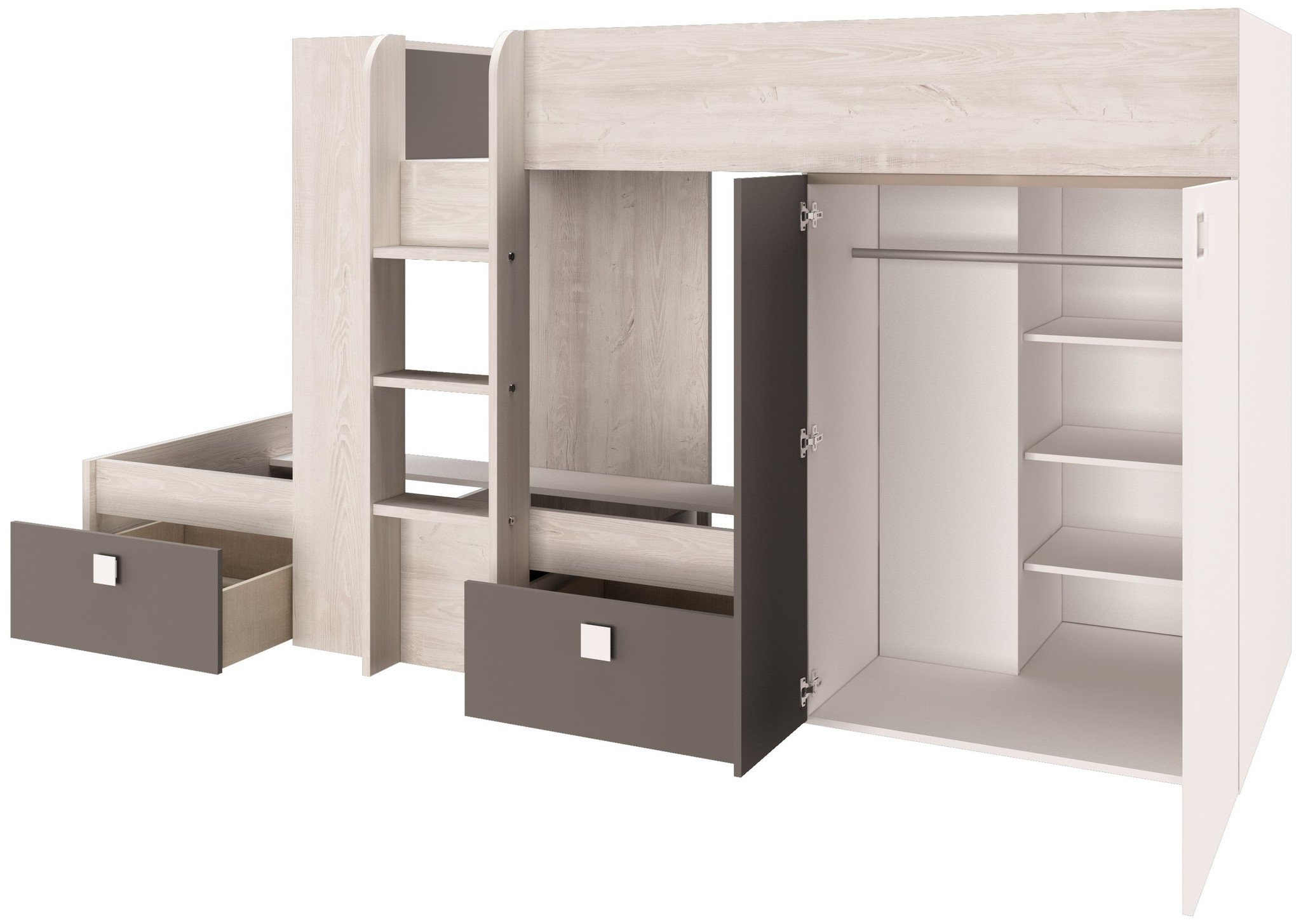 Het ruimtelijke stapelbed Maxim Antraciet maakt iedere tienerkamer helemaal compleet. Dit multifunctionele stapelbed biedt een slaapplek voor 2 kinderen en heeft diverse opbergmogelijkheden in de vorm van een 2-deurs kledingkast en 2 laden op wieltjes.
