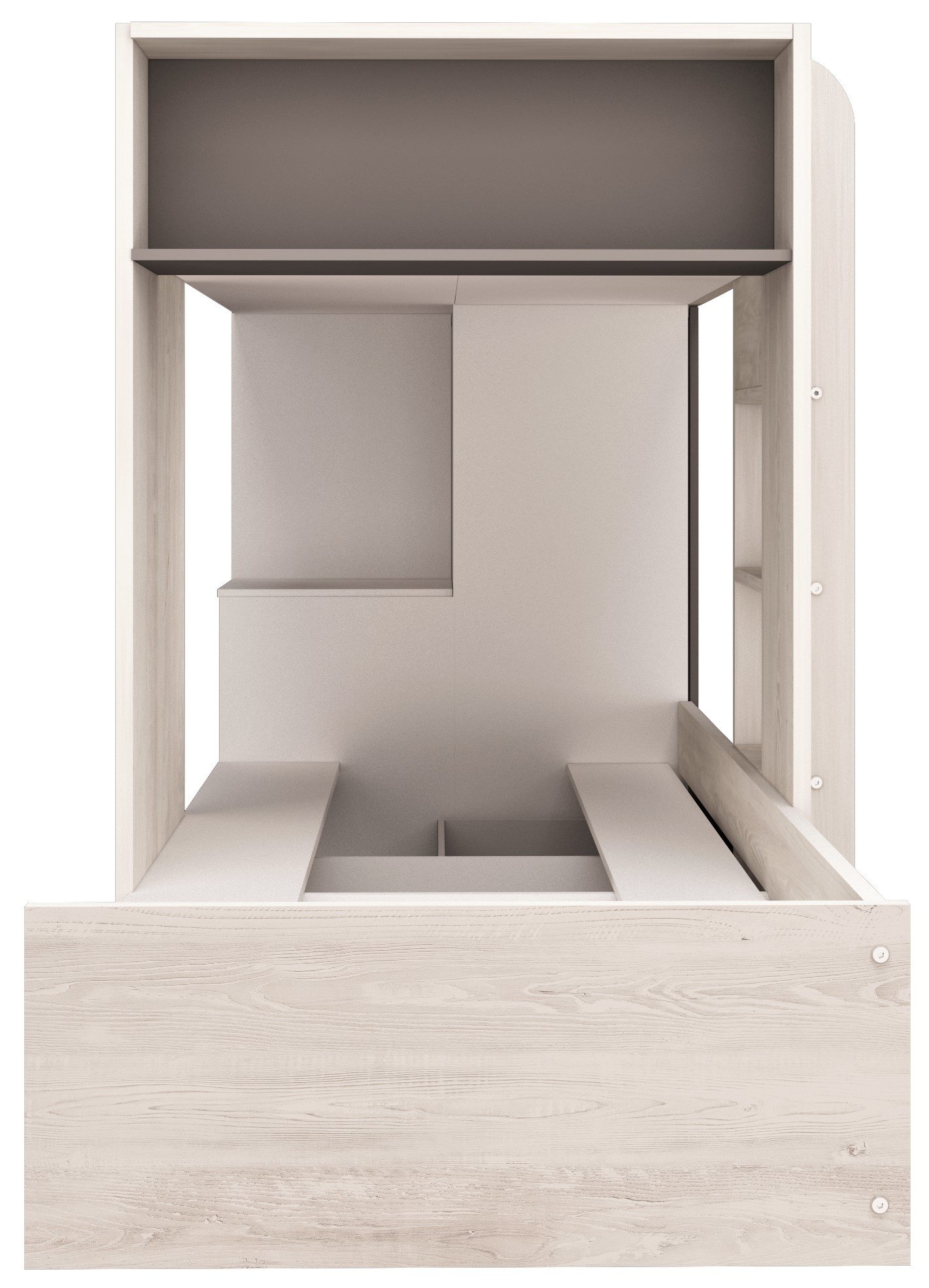 Naast de twee prettige slaapplaatsen is dit stapelbed voorzien van een zee aan opbergruimte.