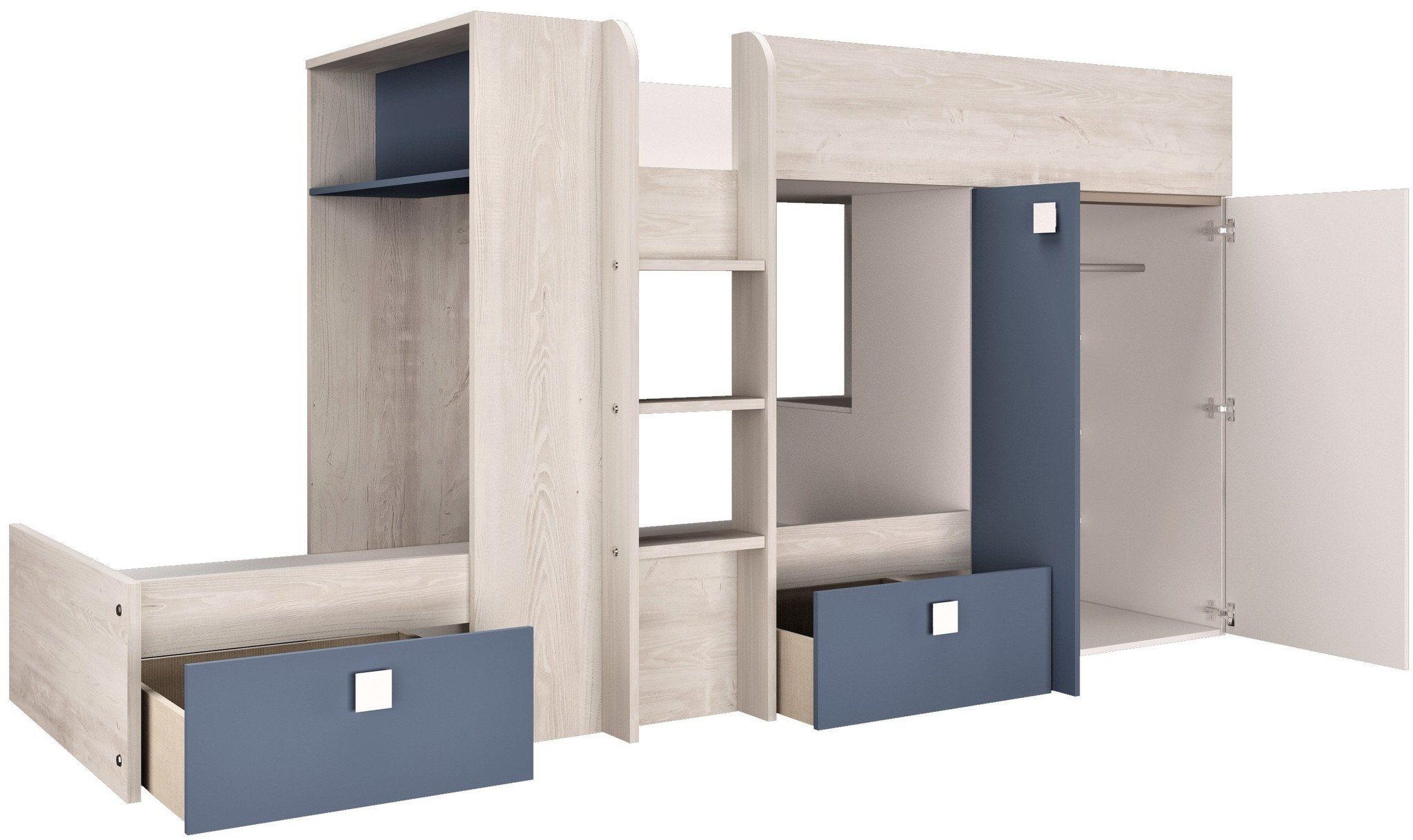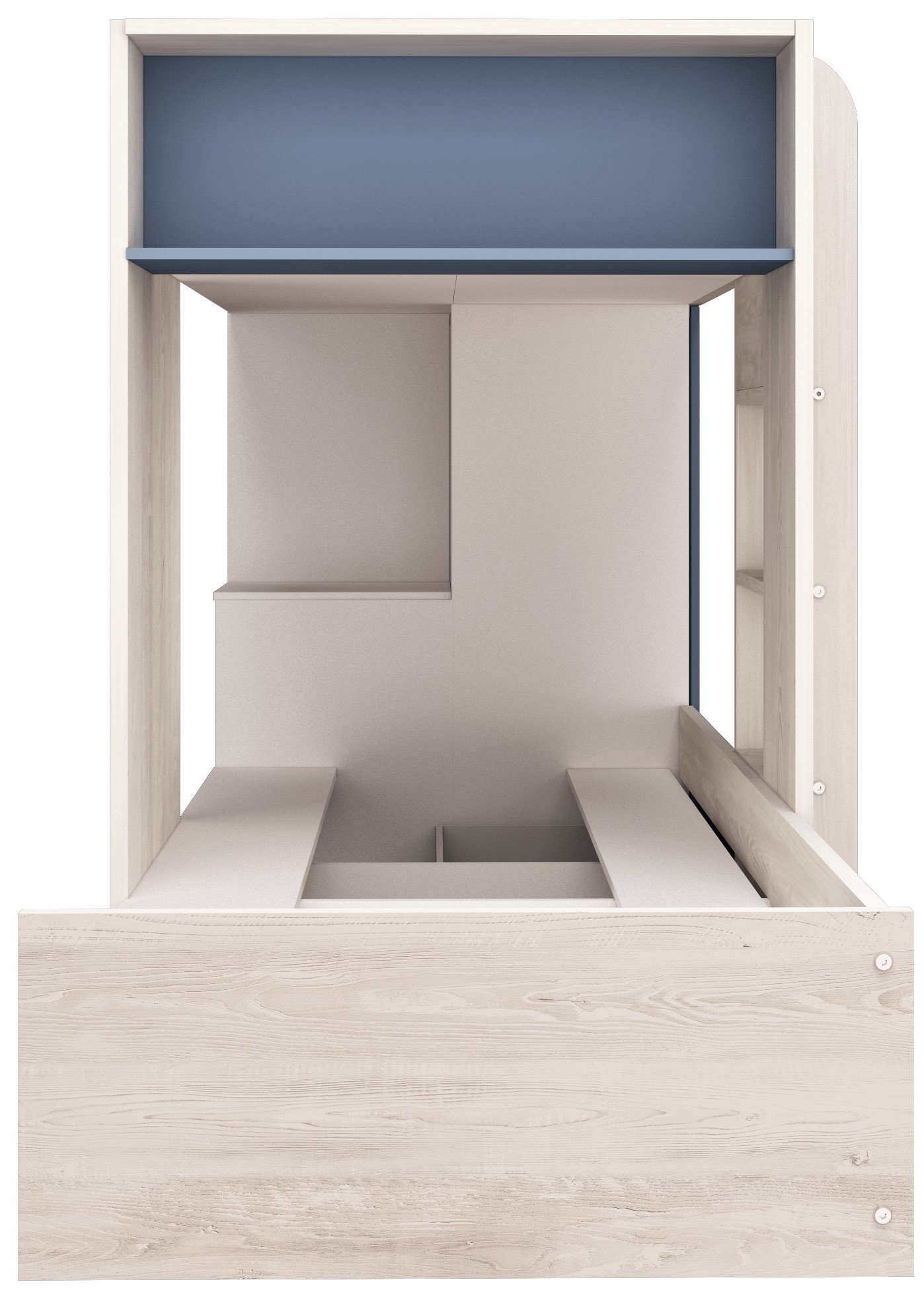 Naast de twee prettige slaapplaatsen is dit stapelbed voorzien van een zee aan opbergruimte.