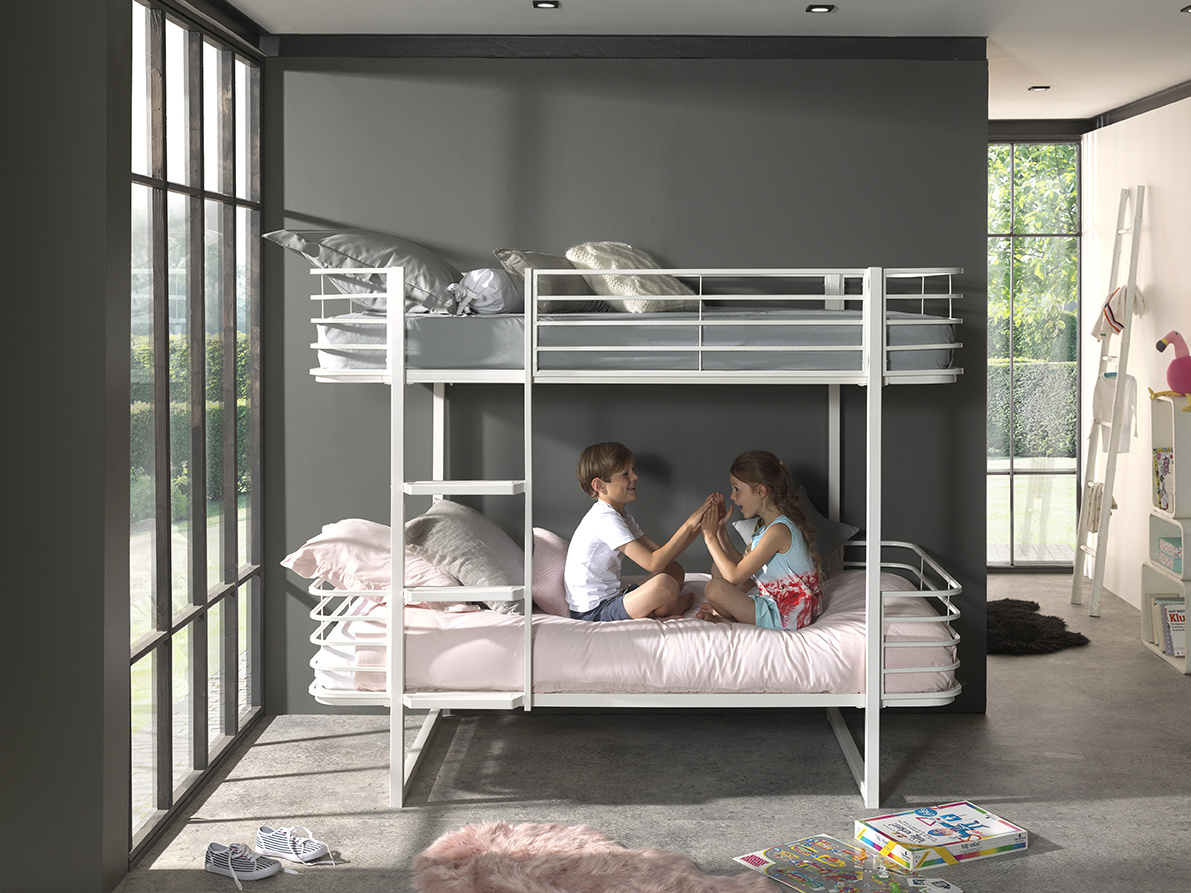 Hip stapelbed Oscar van Vipack. Minimalistisch maar met een bijzonder design dat alleen uit metaal gemaakt kan worden. Een nadeel van een metalen bed is vaak dat het wat koud en kil oogt, maar dat is bij dit ontwerp niet aan de orde. Een hele leuke prestatie.