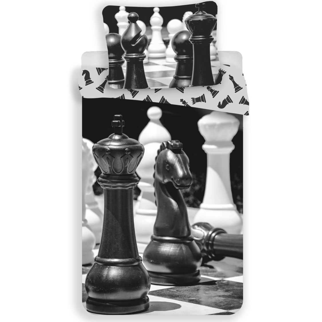Sweet Home Dekbedovertrek, Schaken - Eenpersoons - 140 x 200 + 70 x 90 cm - Katoen