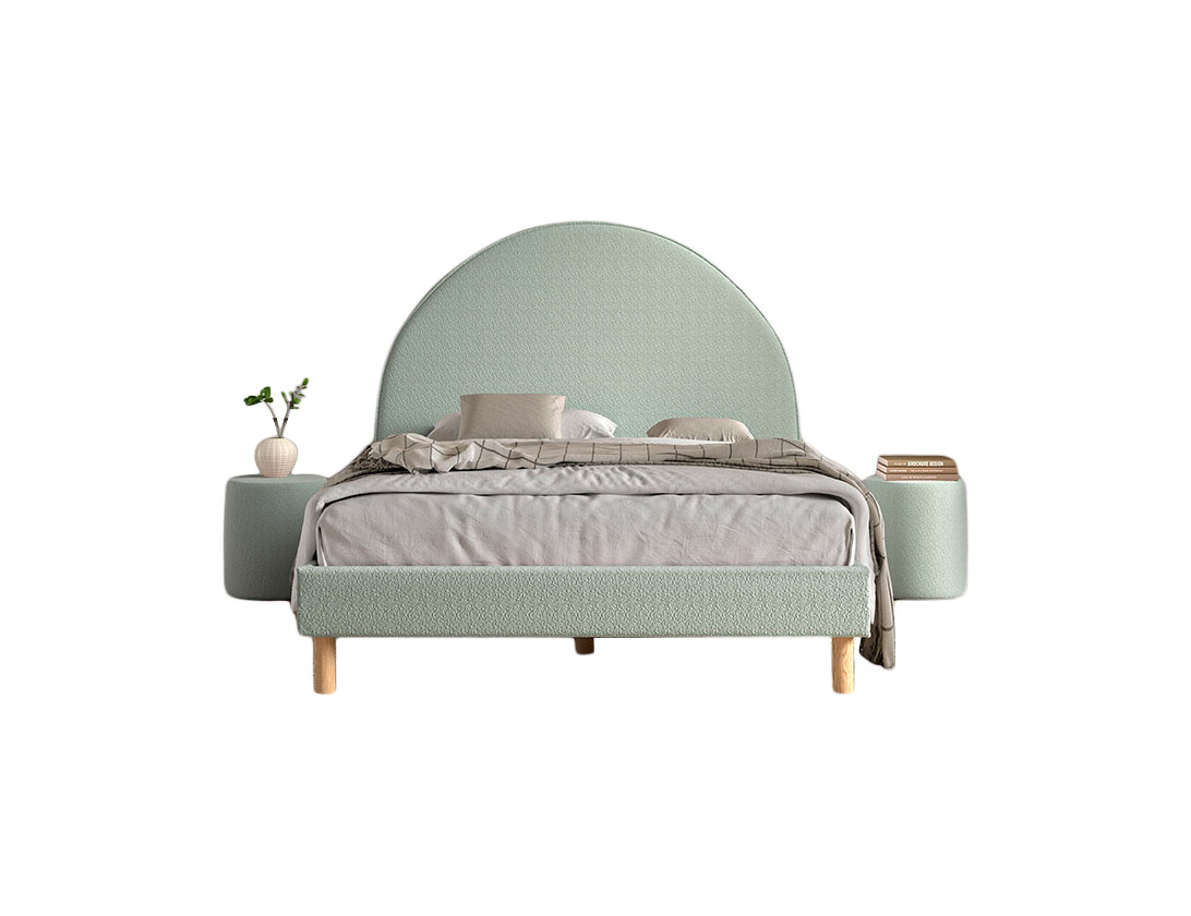 Het afgeronde hoofdbord zorgt voor een vriendelijke, speelse look en biedt tegelijk een fijne rugleuning om tegenaan te lezen, relaxen of series te kijken. De afgeronde vormen maken het ontwerp eigentijds en veilig.