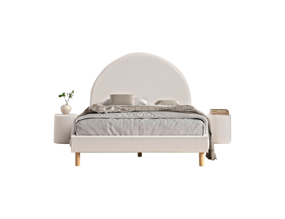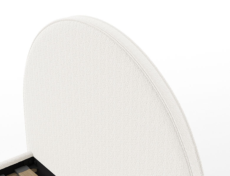 Het Moon bed is volledig bekleed met een luxe, zachte bouclé-stof. Deze trendy stof voelt heerlijk aan en geeft het bed een warme, knusse uitstraling – ideaal voor tieners die houden van comfort én stijl.