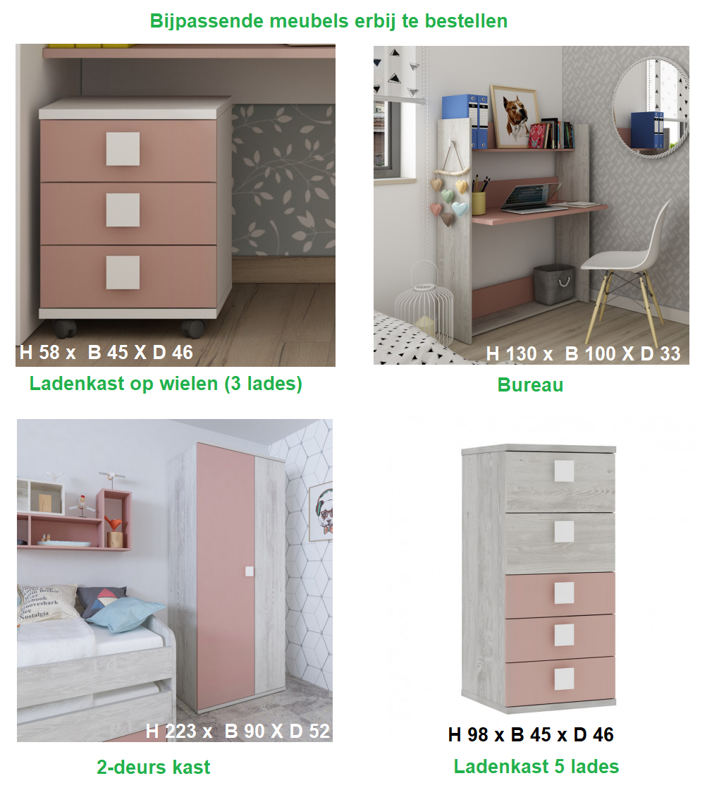 | Kleur | wit, grijs eiken, oud roze |